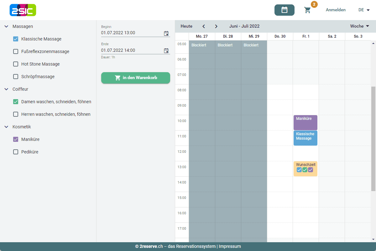 Lass deine Kunden ihren Friseurtermin, ihre Maniküre oder Massage online buchen. Ideal für die Reservation aller Dienstleistungen im Bereich Beauty und Wellness.