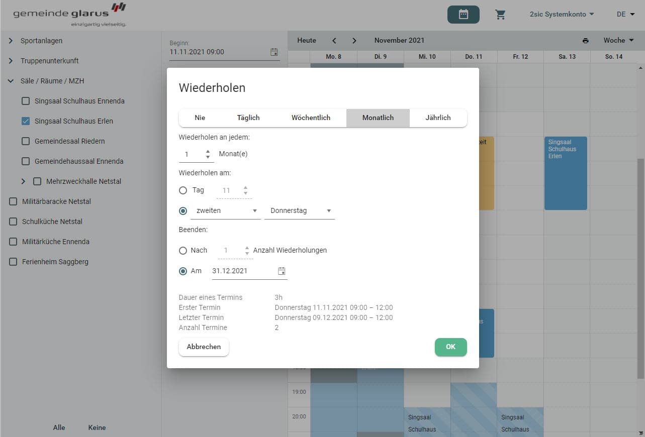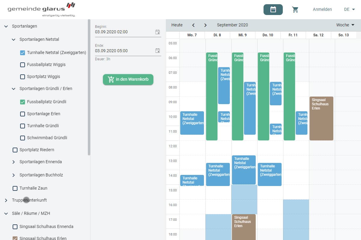 Im Online Kalender ist die Verfügbarkeit der Schulhausanlagen ersichtlich – für die Verwaltung und die Mieter.